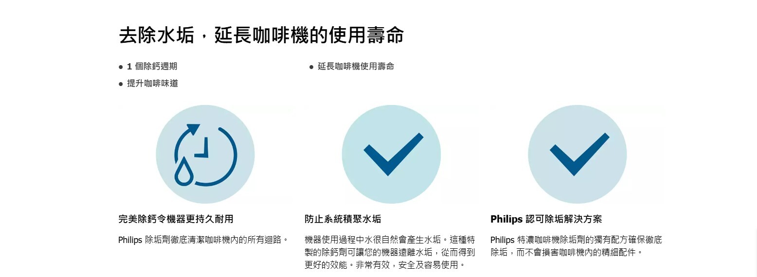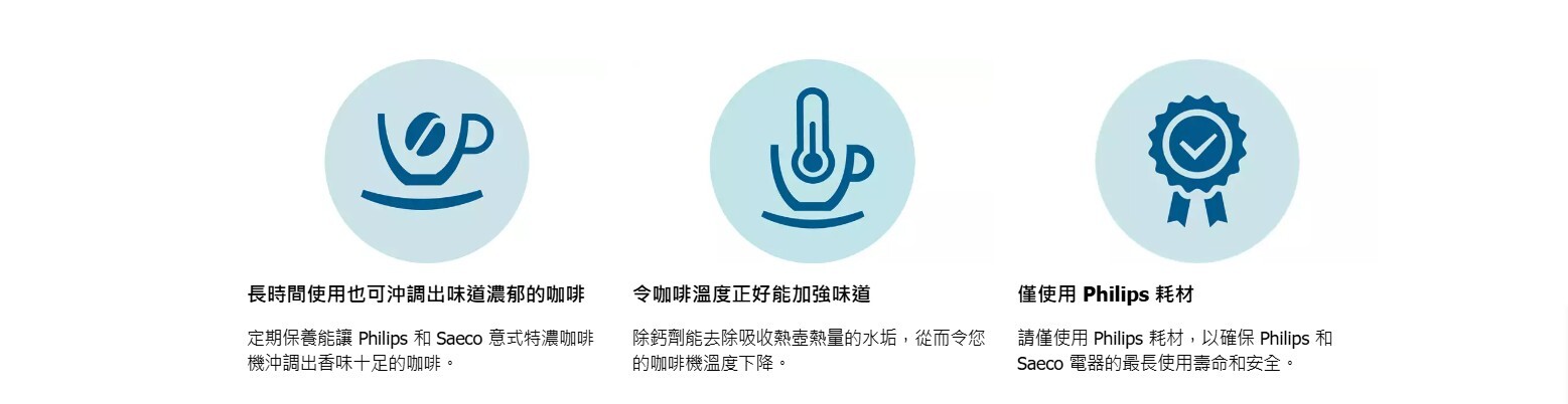 飛利浦 CA6700 咖啡機專用除鈣劑能有效去除咖啡機中的鈣垢,確保咖啡風味純淨。定期使用除鈣劑可延長咖啡機的使用壽命,讓您隨時品嚐到美味咖啡。