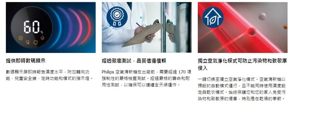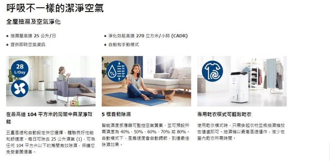 飛利浦 DE5205/39 5000系列 2合1抗敏空氣淨化抽濕機,讓您的家中充滿舒適潔淨的空氣。這款強勁的抽濕機經過徹底測試,可以快速可靠地除濕。抽濕機配備 HEPA 濾網,能去除異味、細菌及污染物,淨化空氣。
