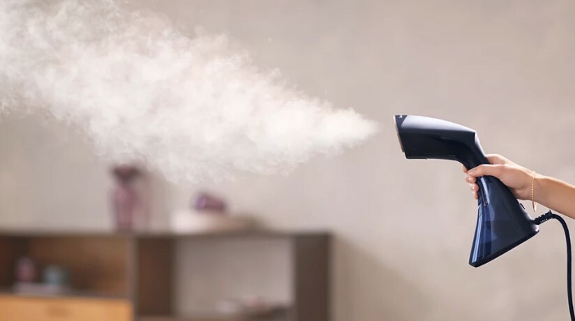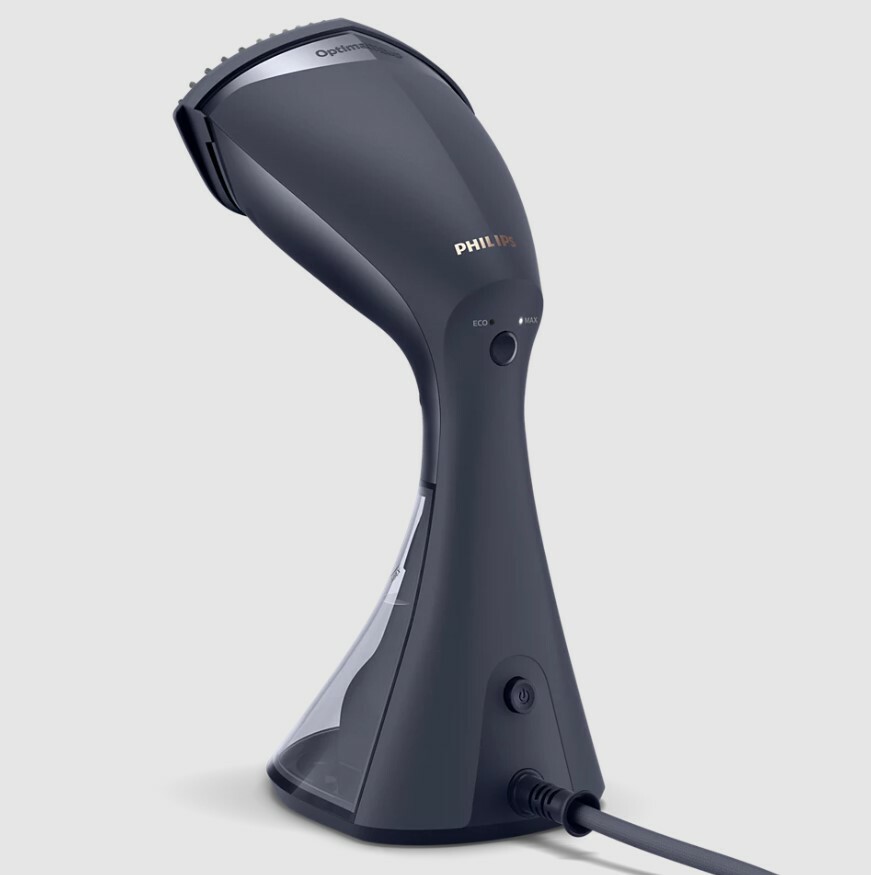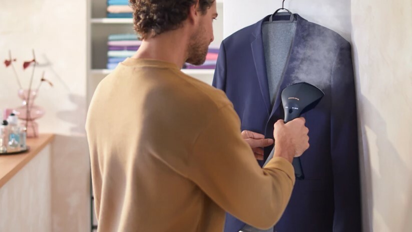 Philips GC810 手提式蒸氣掛熨機 讓您快速輕鬆地熨平日常服飾的縐褶;每次熨燙多達 5 件衣物,無需熨衣板。可安全用於所有物料,即使是精細衣物,都能保證無亮痕及不熨焦。
