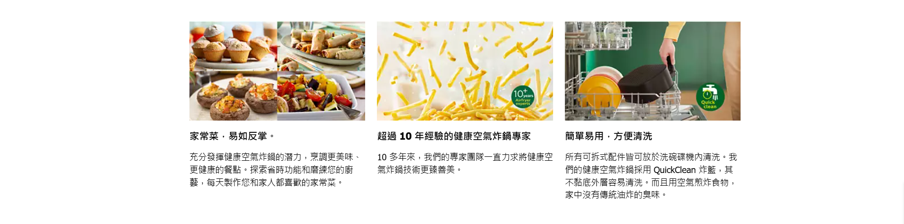 Philips 將世界第 1 的健康空氣炸鍋帶到每個家中。Rapid Air 高速空氣循環技術為您帶來外脆內嫩的健康食品。