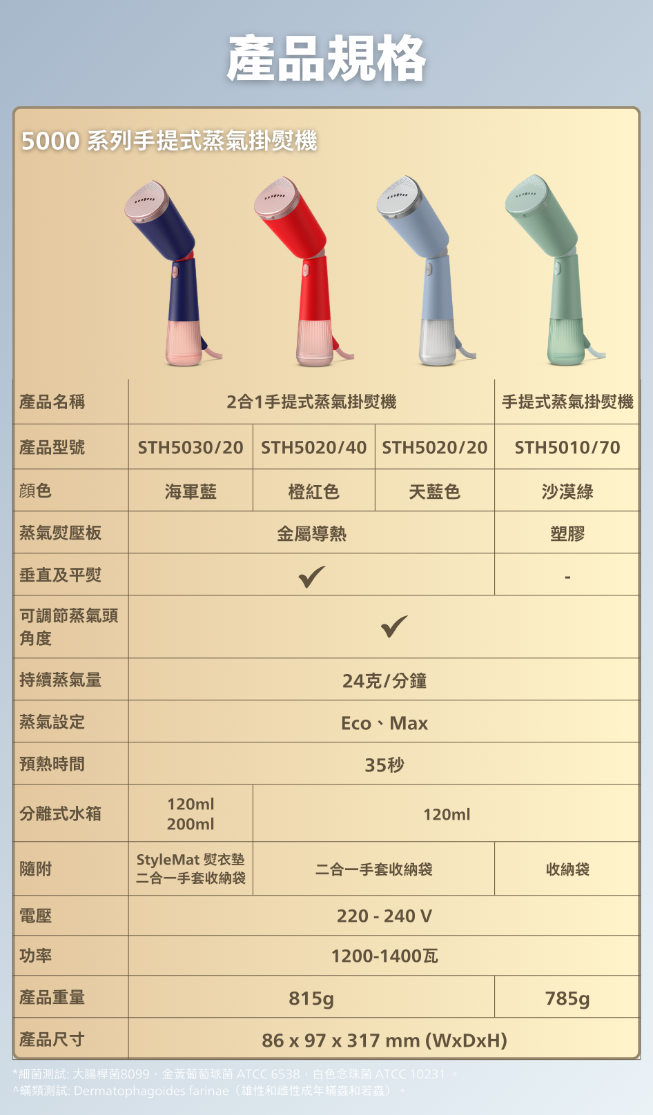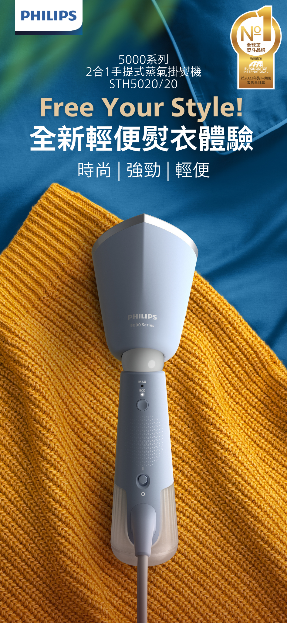 PHILIPS 飛利浦 STH5020 5000系列 2合1手提式蒸氣掛熨機產品介紹: