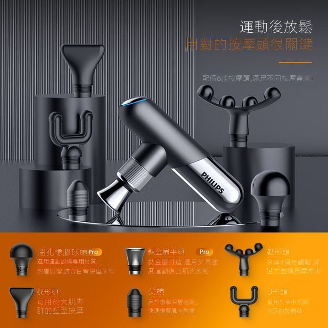 PHILIPS PPM5101G 運動迷你按摩槍,強勁動力,纖薄機身這款纖薄迷你按摩槍是適用於定期鍛鍊人們的強大設備。採用強勁的動態系統,可提供出眾的10 kg輸出功率,8毫米按摩深度,適合運動暖身和恢復。