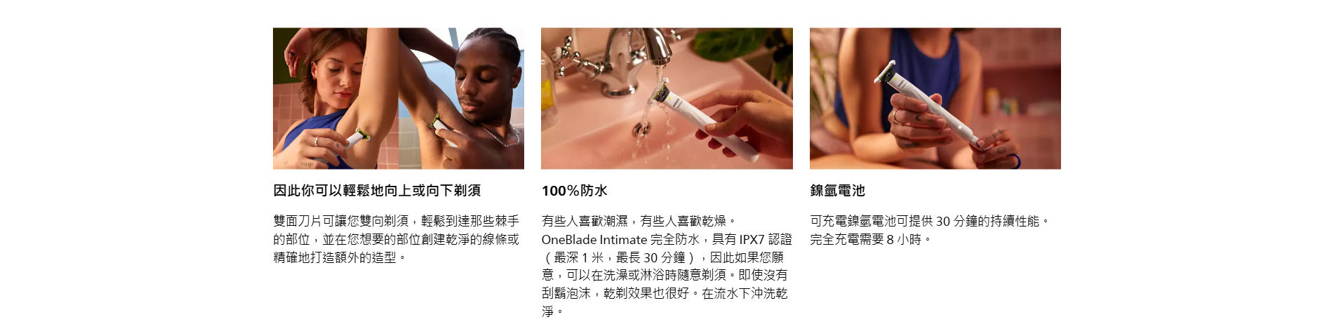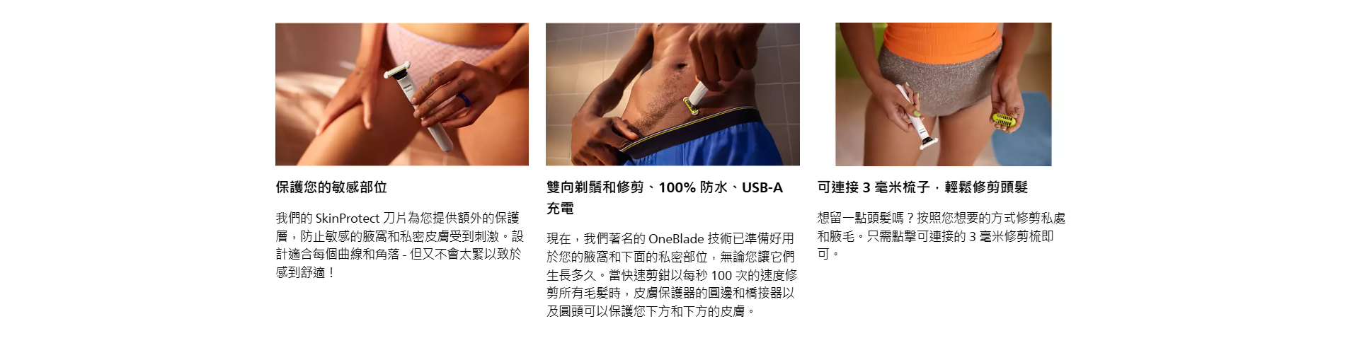 Philips QP1924 Norelco OneBlade男女通用體毛毛髮修剪器具有多項貼心設計,皮膚保護、雙向剃鬚和修剪功能,讓您在私密部位進行剃須時輕鬆、舒適。100%防水設計和長效電池使其更加實用,提供優異的剃須體驗。