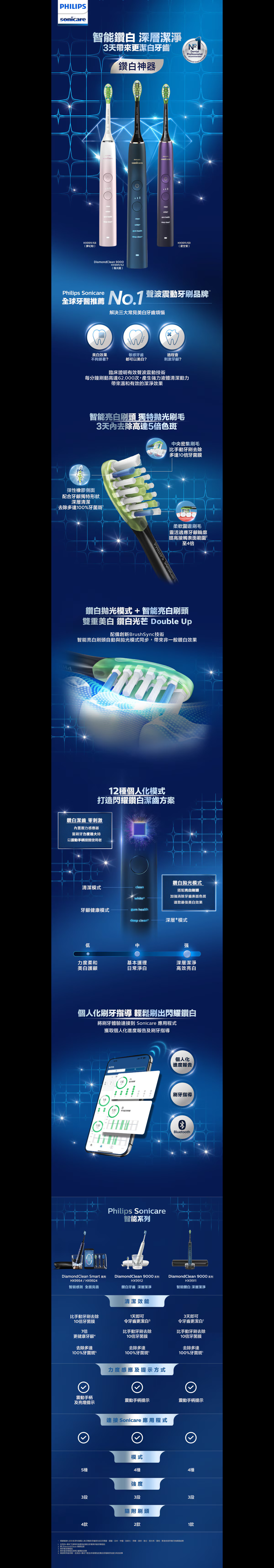 Philips HX9911 Sonicare 9000 Series 聲波震動電動牙刷 ,輕鬆獲得亮白笑容。使用進階 Sonicare 技術打造亮白牙齒和健康口腔,有型有格開啟每一天。使用已連接的應用程式進行指導和追蹤,溫和呵護牙齦。從 4 種模式和 3 種強度中獲得個人化刷牙體驗。