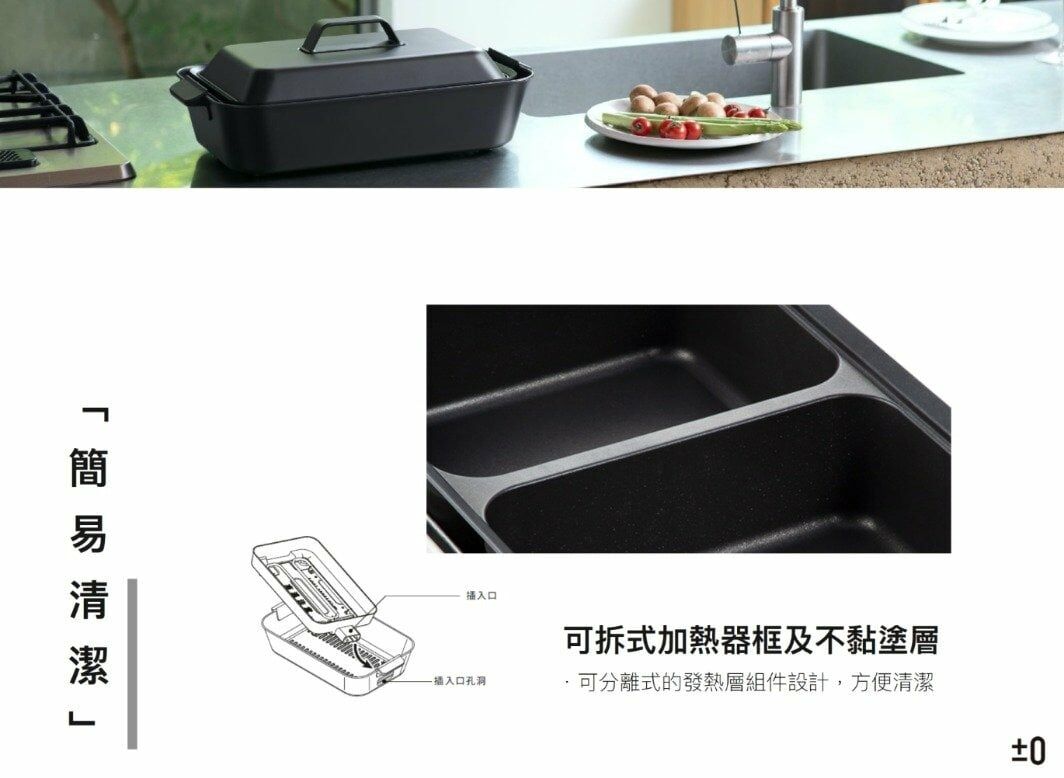 日本正負零 多功能料理鍋 XKH-E010具有4層結構,分離式的發熱層組件設計,令清潔鍋具變得更輕鬆簡單。發熱組件與鍋身設有空隙,防止鍋身熱量導致燙傷,特厚的調理鍋層組件除耐用外,更具有良好的傳熱及保溫作用。