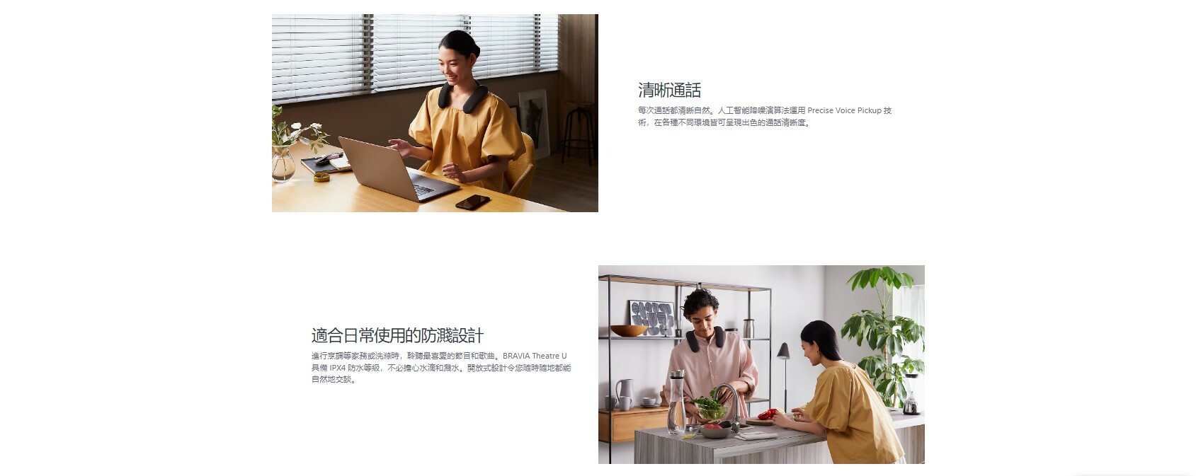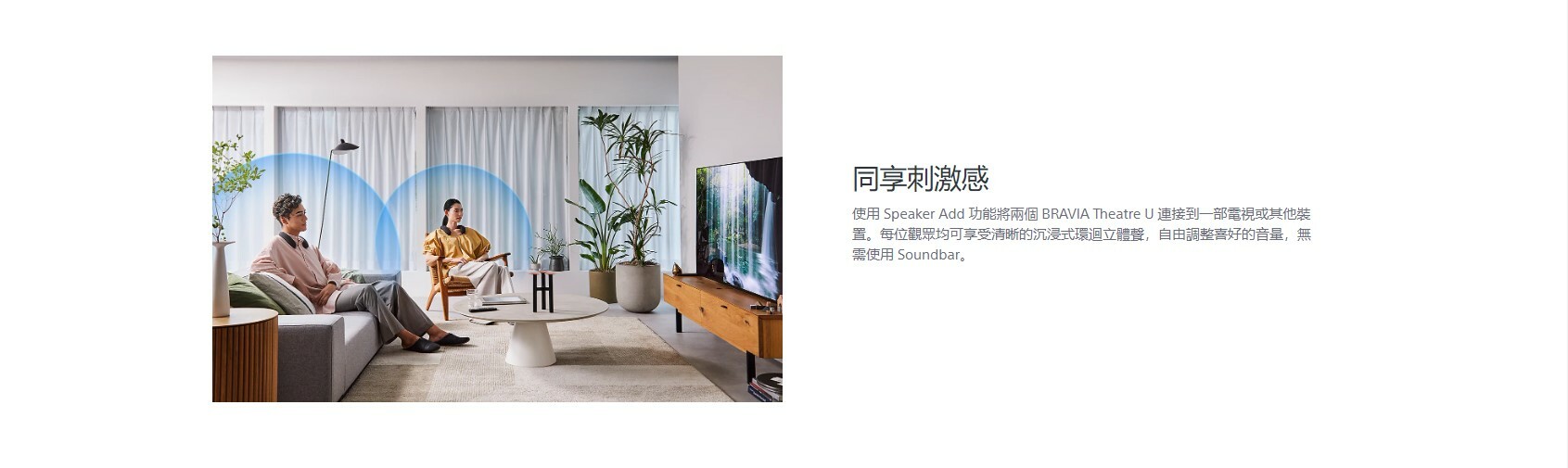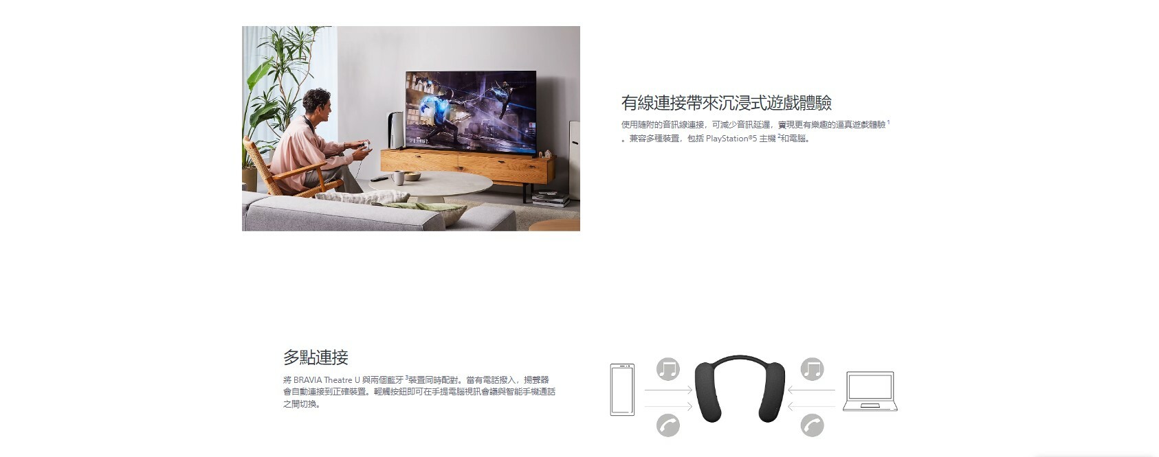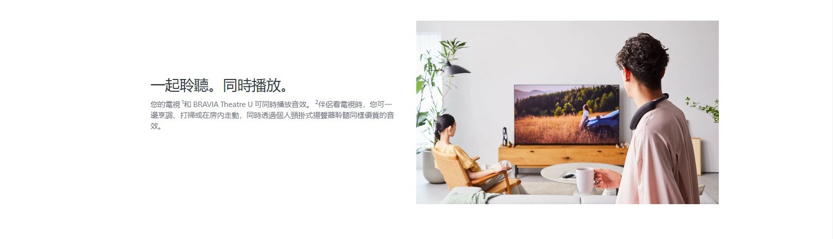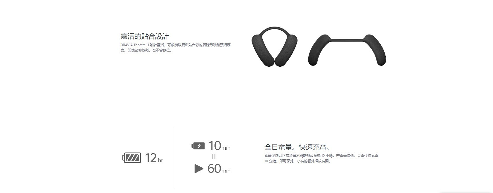 Sony BRAVIA Theatre U 是一款個人揚聲器,讓您沉浸在電影中而不會打擾他人。我們的時尚無線頸掛式揚聲器備有 Dolby Atmos®,搭配兼容的 BRAVIA 產品,帶來逼真的 360 Spatial Sound,讓您欣賞強勁的原聲帶或進行清晰對話。您還可搭配另一部 BRAVIA Theatre U 分享體驗。