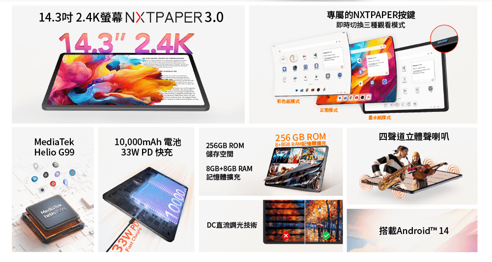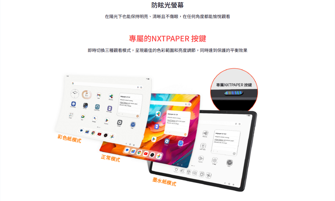 獨家NXTPAPER快捷鍵:一鍵切換「未來紙模式」,享受更舒適的護眼效果。