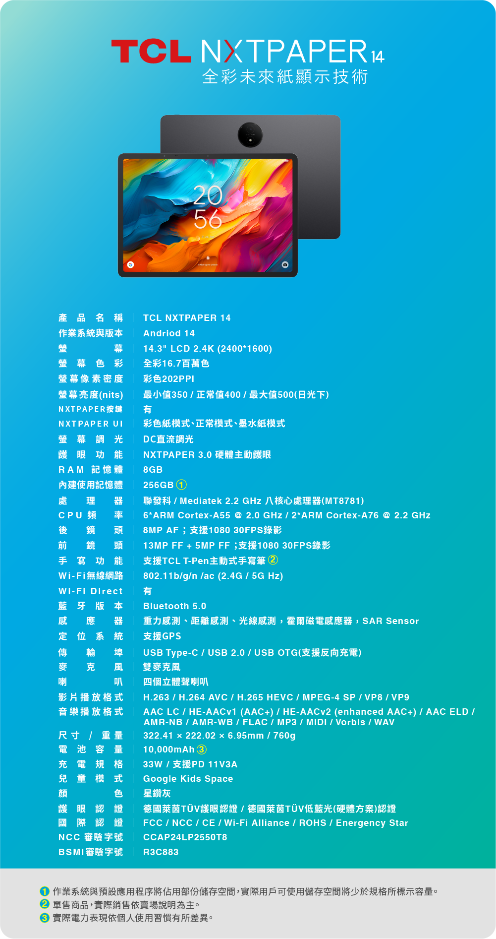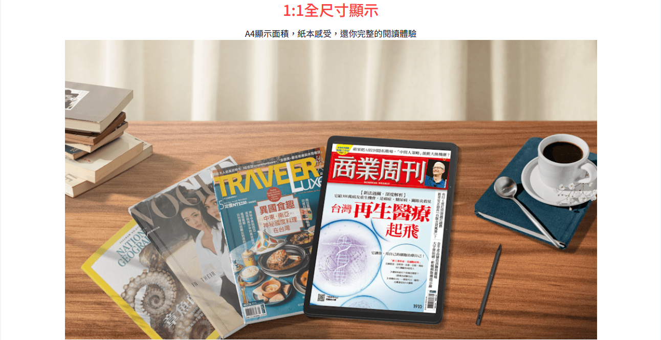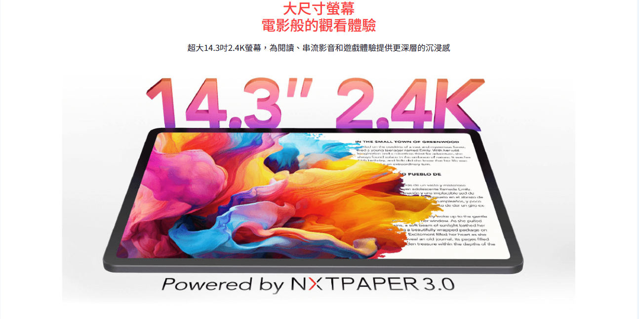 14.3吋大螢幕:98% A4 顯示比例,給你如紙本般的 1:1 完美閱讀體驗。
