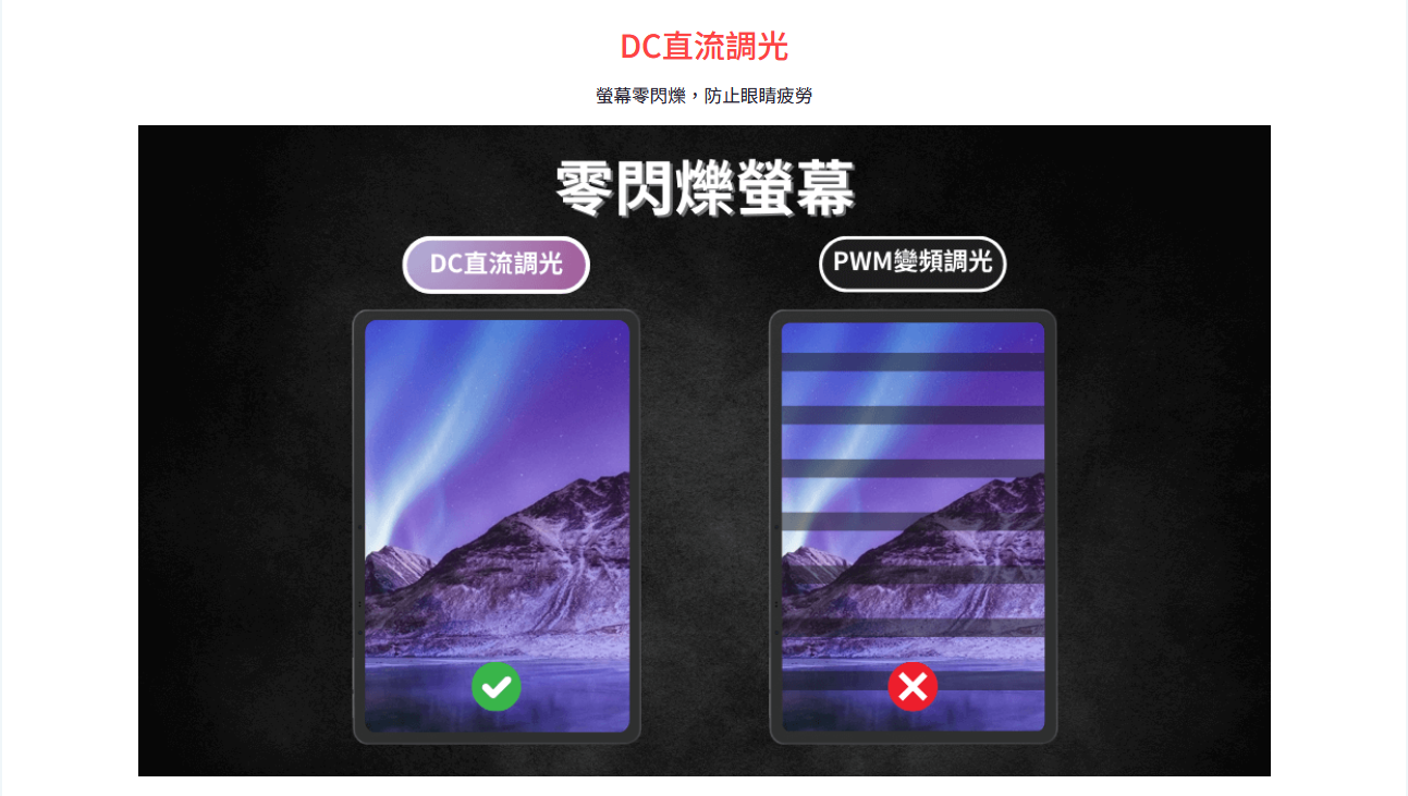 DC直流調光 | 螢幕零閃爍:真正的零閃爍視覺體驗,極致護眼無負擔。