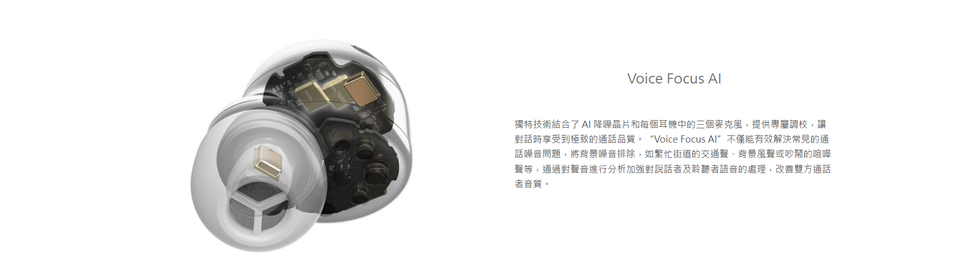 Voice Focus AI 技術不僅在說話時而且在聆聽時都帶來先進的降噪效果。
