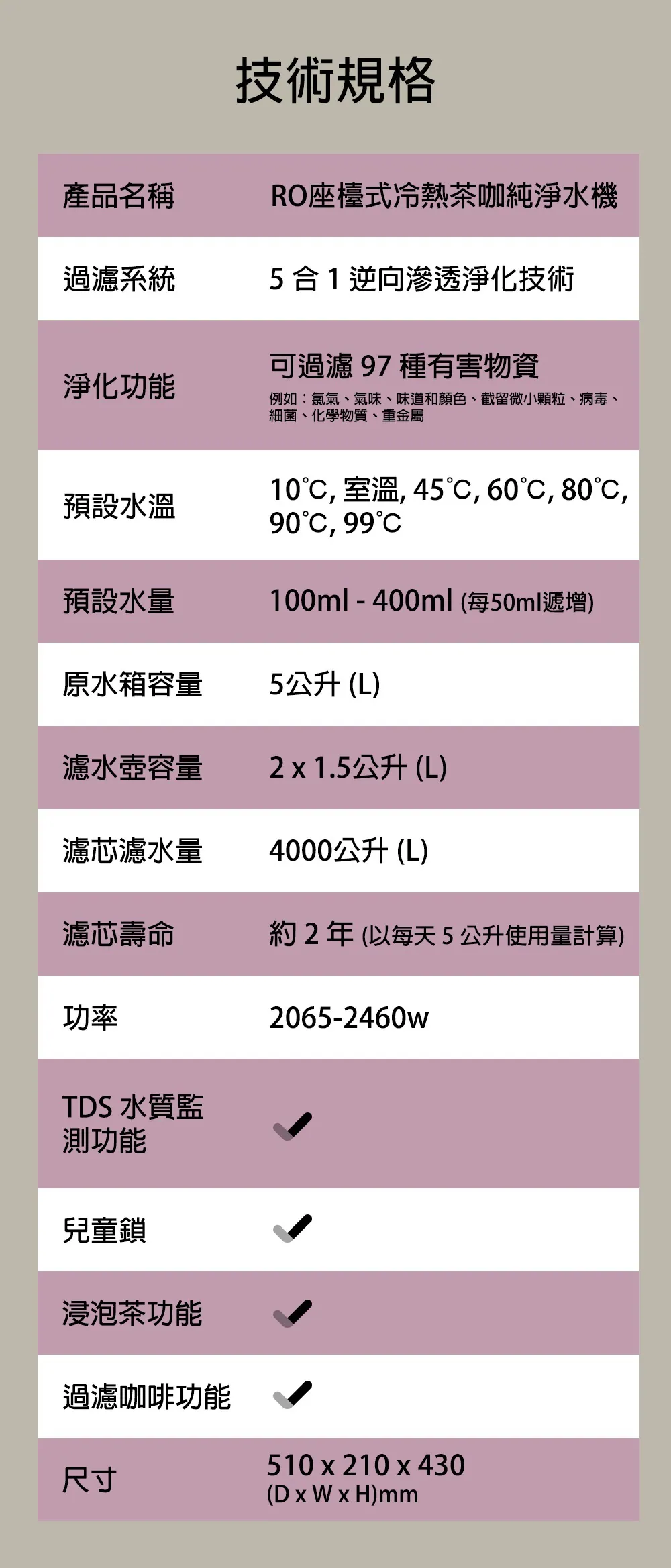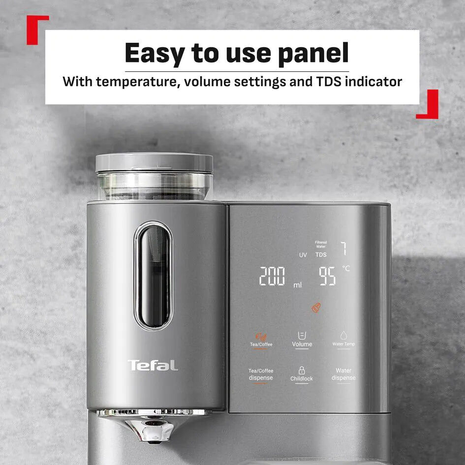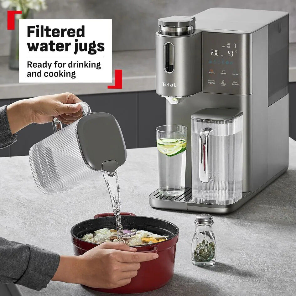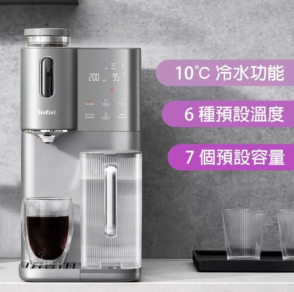 Tefal BR653B 結合了 RO 逆滲透濾水、冷熱水供應以及專為茶飲與咖啡愛好者設計的沖調模式。其先進的溫控系統能精確提供不同飲品所需的最佳水溫,免安裝設計讓您在任何空間都能享受純淨、專業等級的飲水體驗。