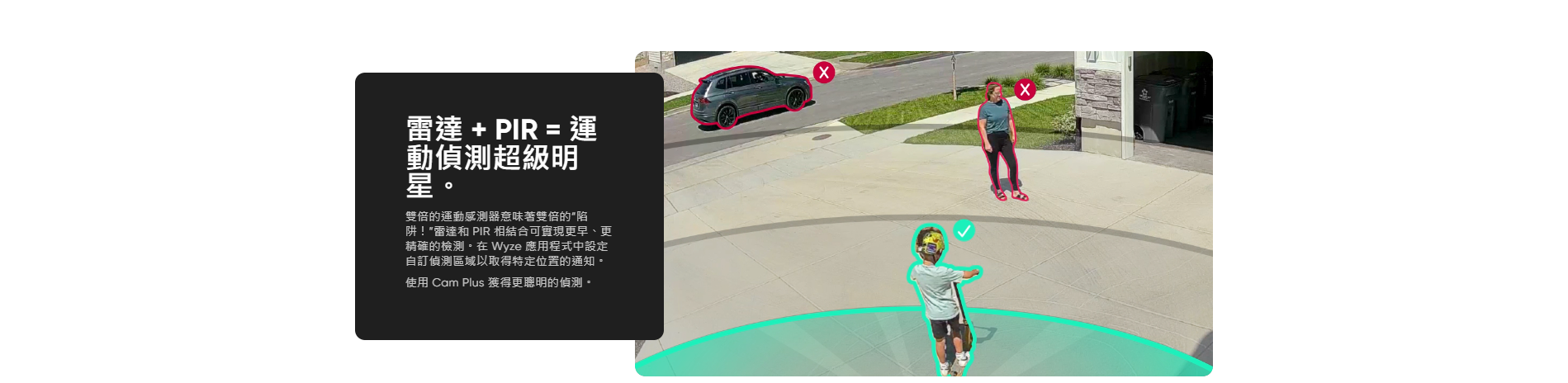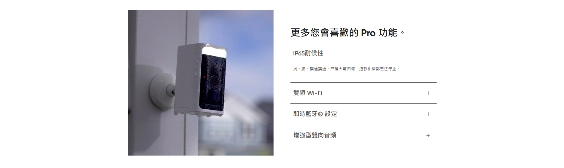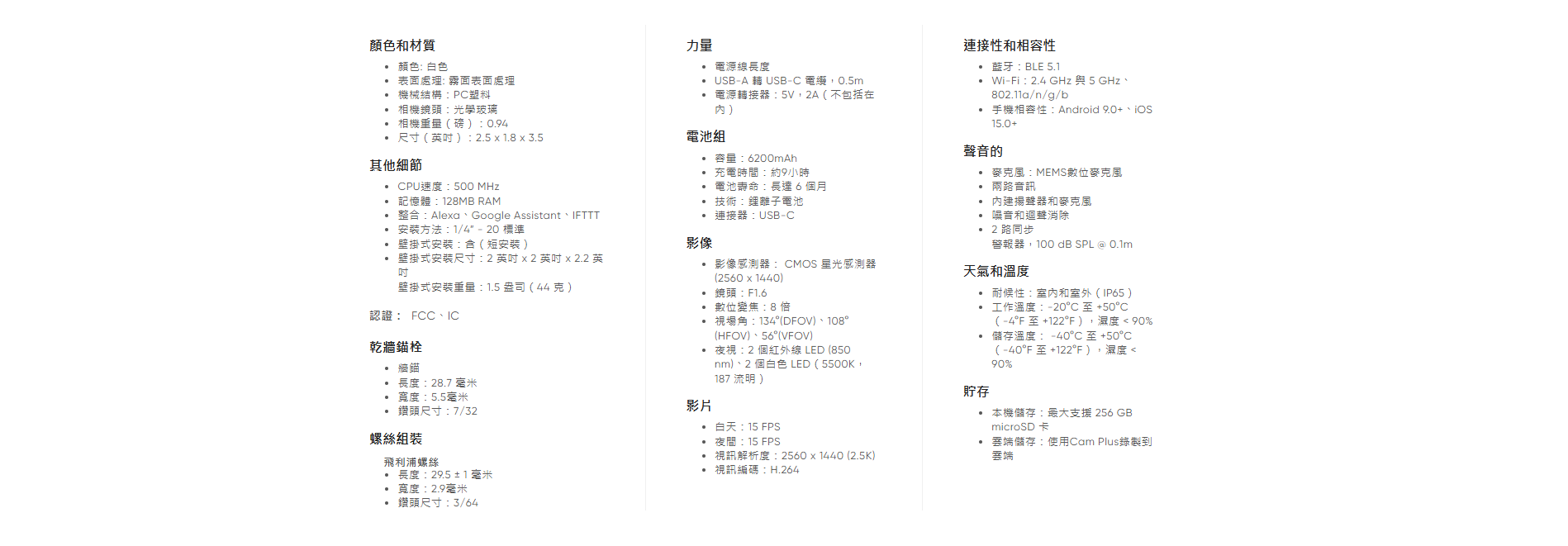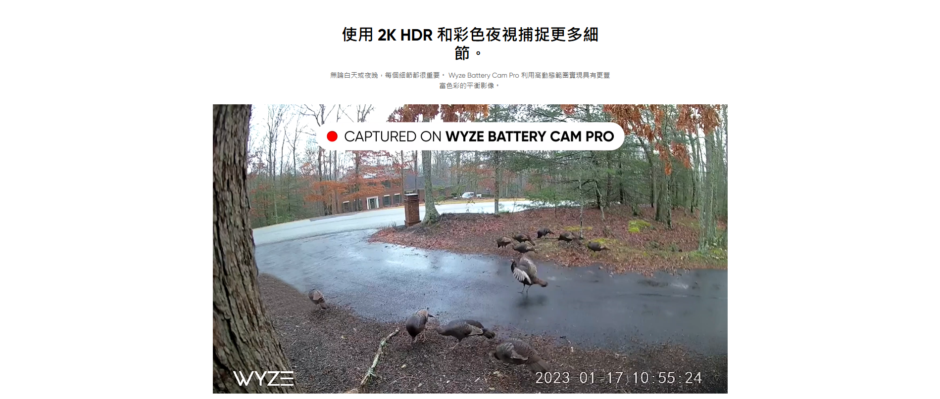 Wyze Battery Cam Pro (2K HDR) 戶內外家居智能攝像頭,2K 全高清彩色夜視;雙向音頻;雷達及PIR 偵測附近指定範圍的動態及精確地提供警報;設有聚光燈和警報器使企圖入侵者;可充電電池拆卸方便;能與 Wyze 太陽能電池板配合使用,既環保又實惠;無需集線器。
