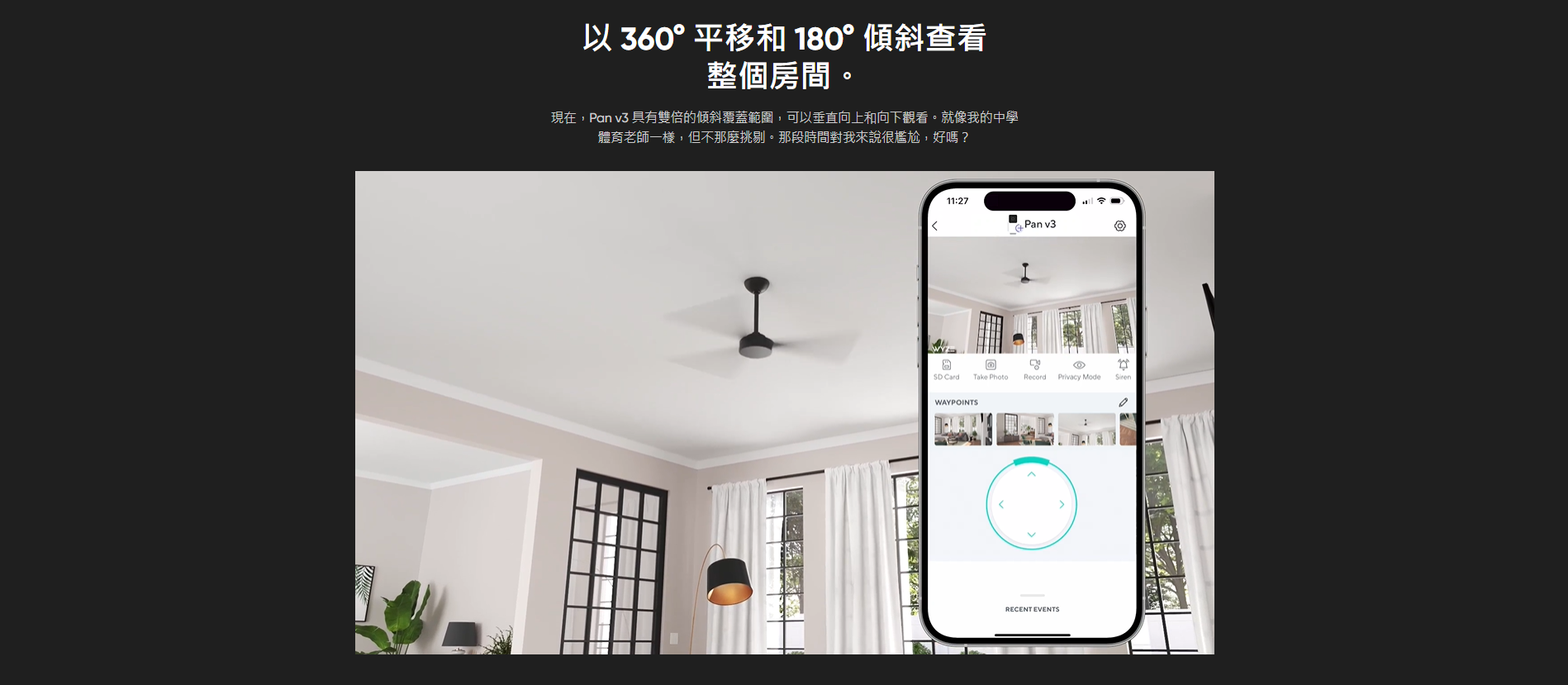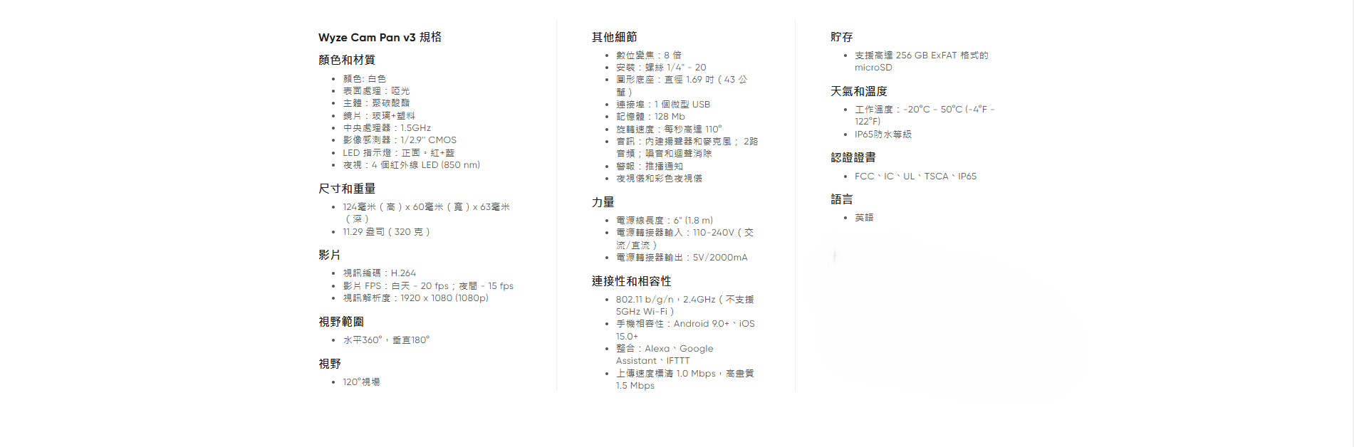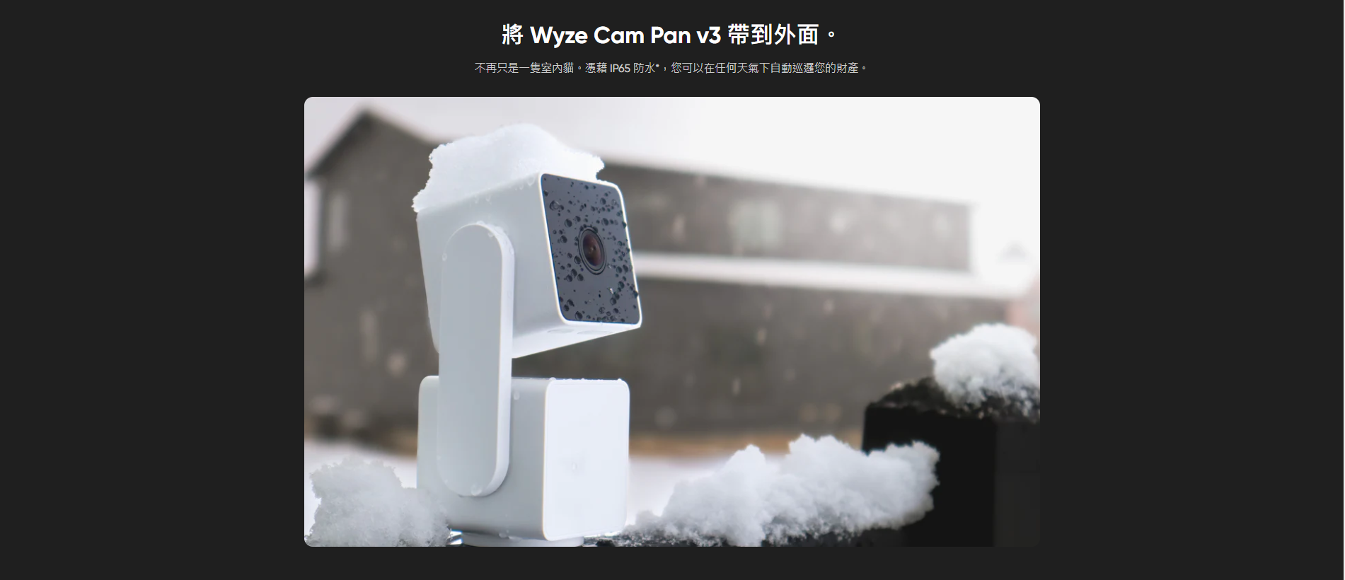 Wyze Cam Pan v3 是一款重新設計的室內/室外、360° 平移和 180° 傾斜安全攝像頭,完全符合 IP65 防風雨要求。