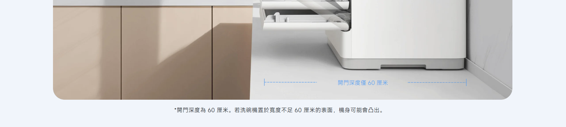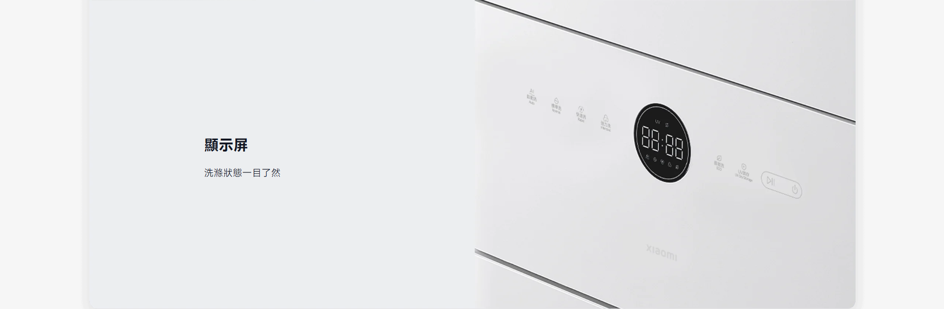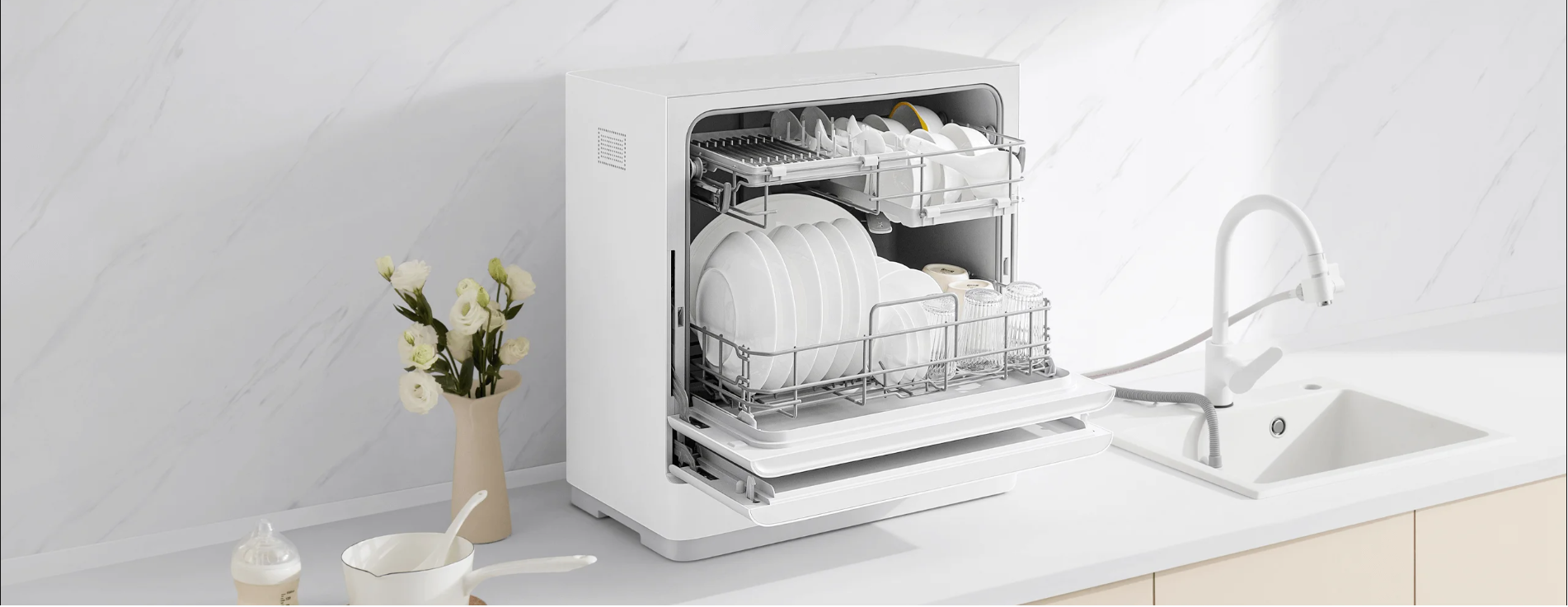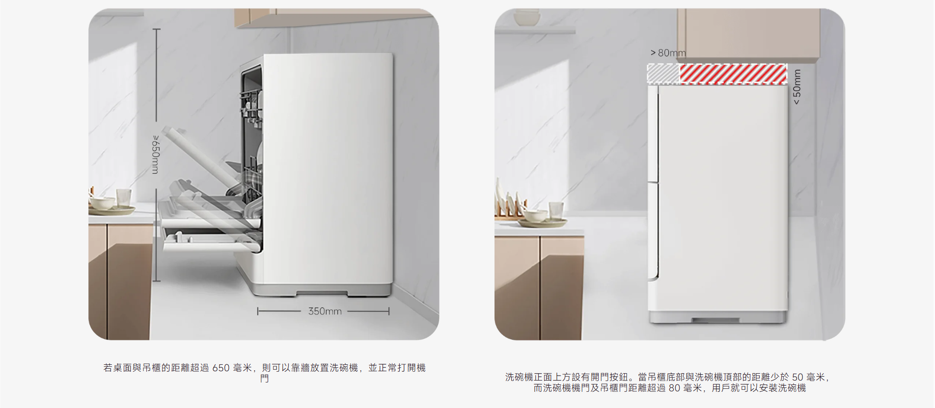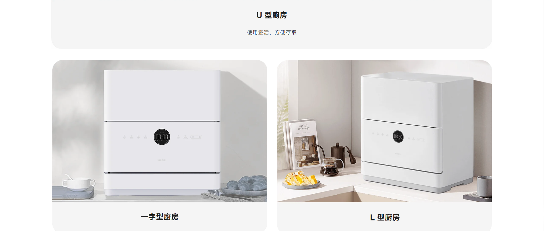Xiaomi 桌上型洗碗機 (型號:QMDW0503M),超薄機身配搭摺門設計,小巧家電融入生活空間。