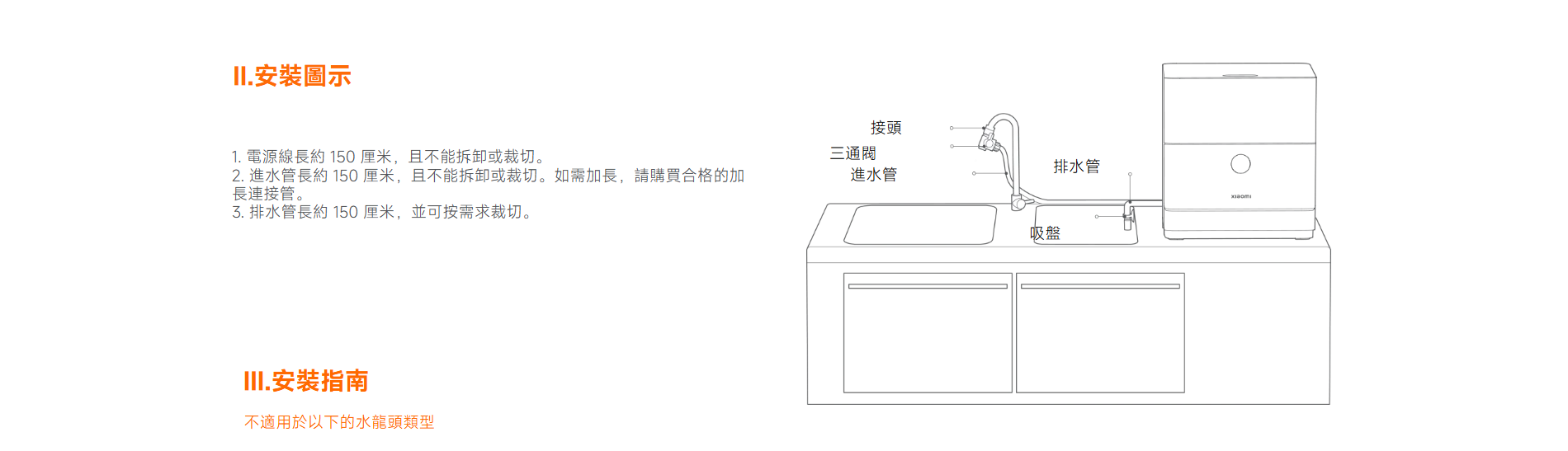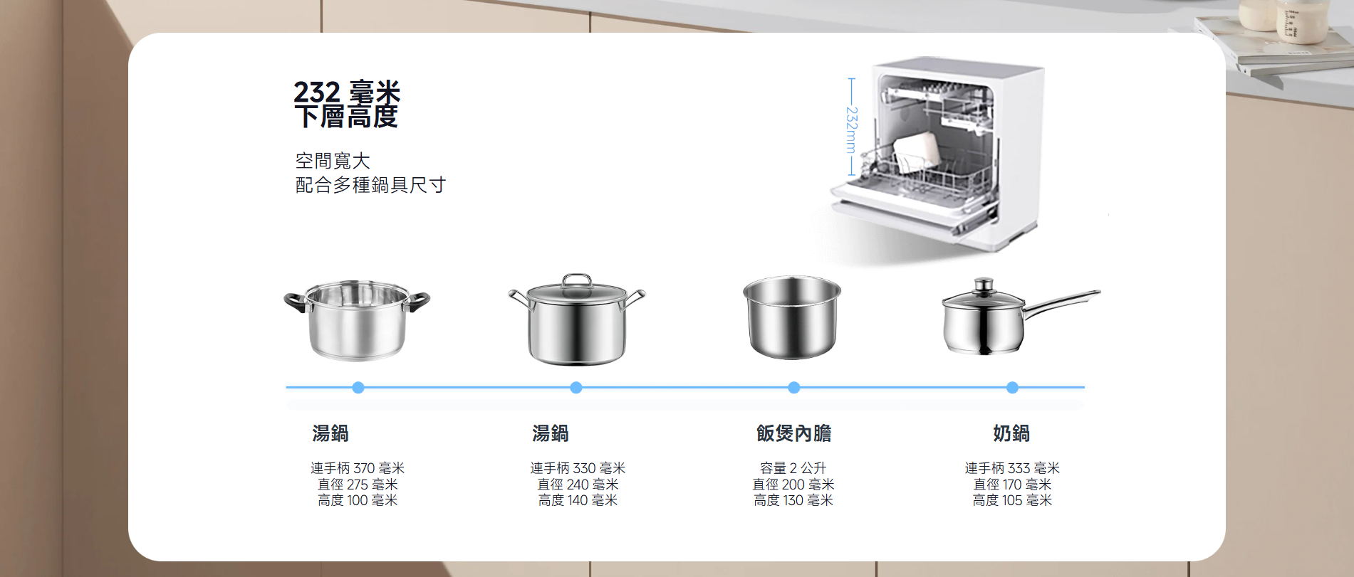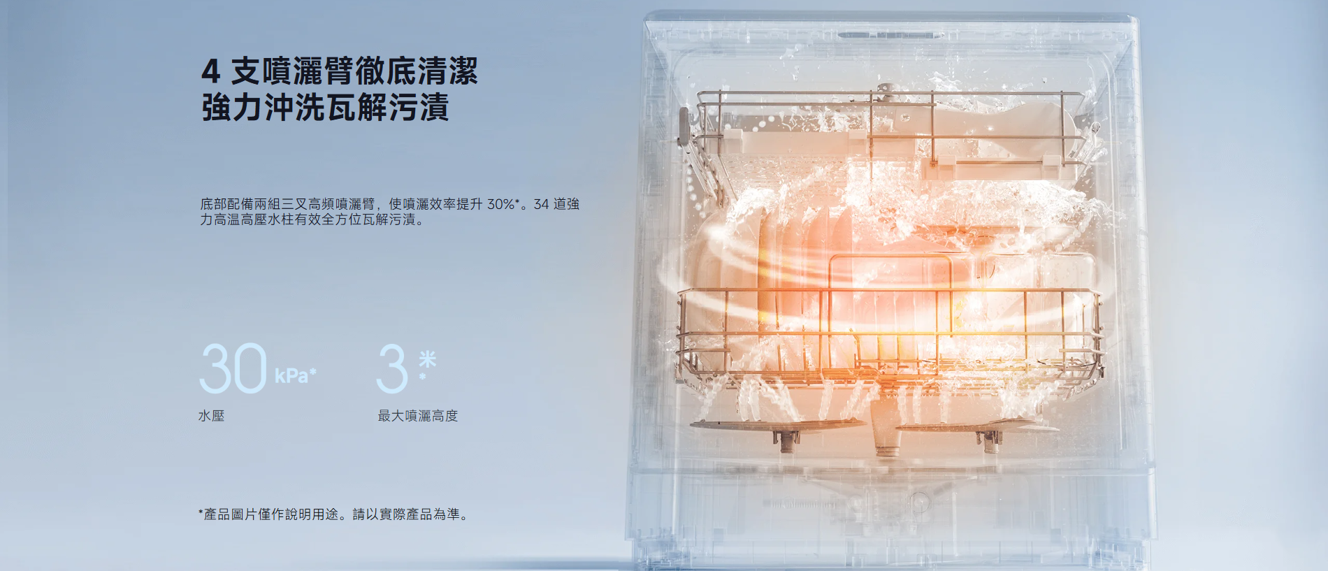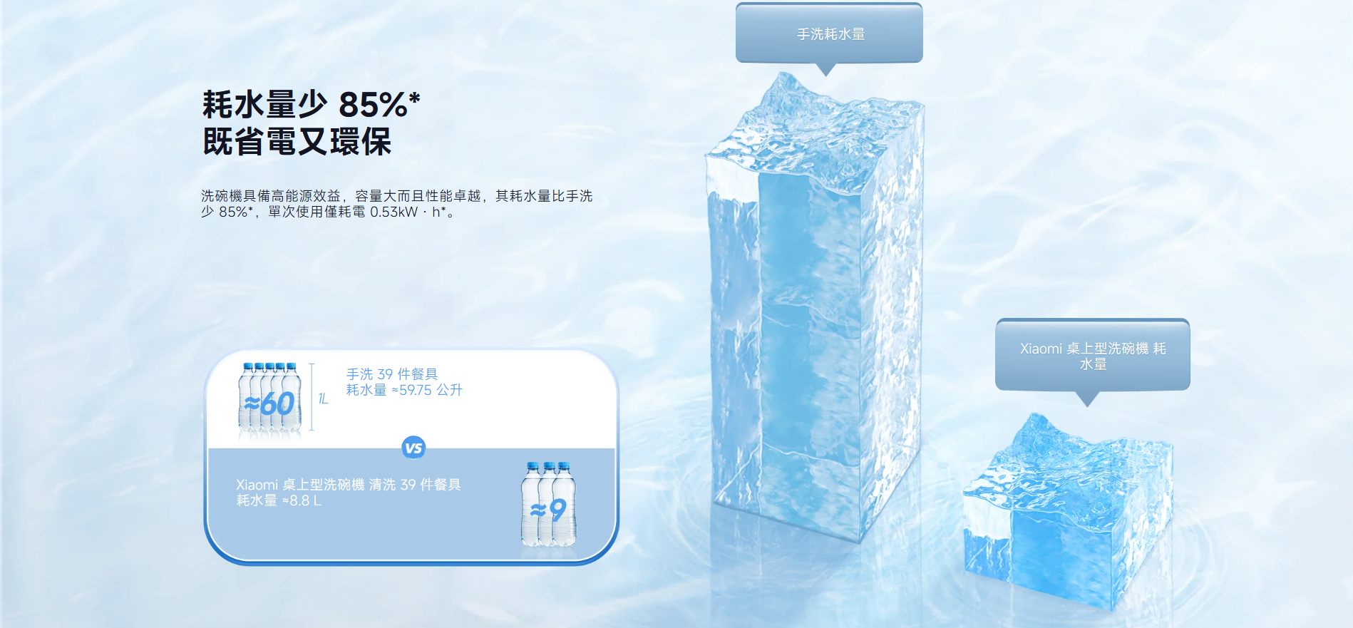 Xiaomi 桌上型洗碗機 (型號:QMDW0503M),超薄機身配搭摺門設計,小巧家電融入生活空間。