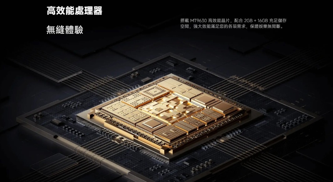 搭載 MT9630 高效能晶片,配合 2GB + 16GB 充足儲存空間,強大效能滿足您的各項需求,保證娛樂無間斷。