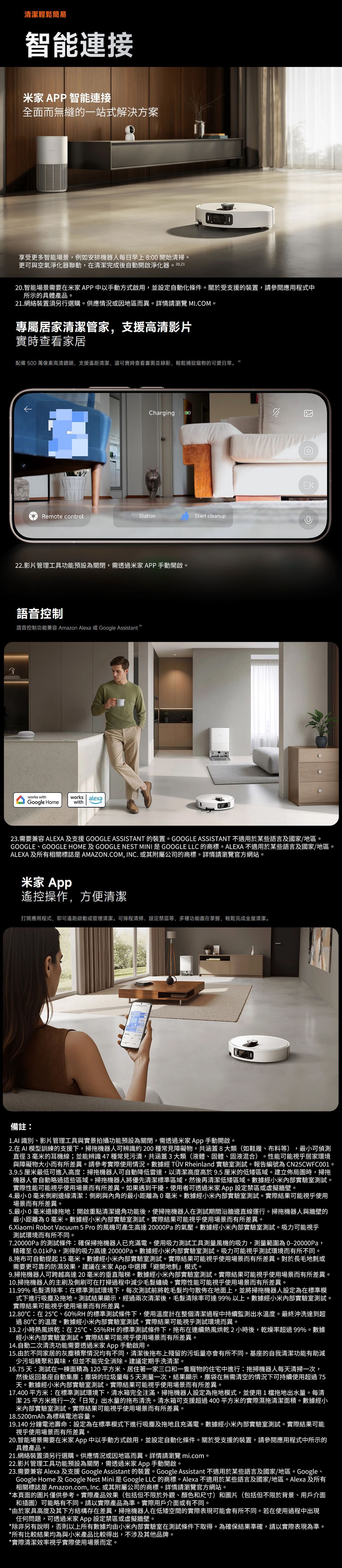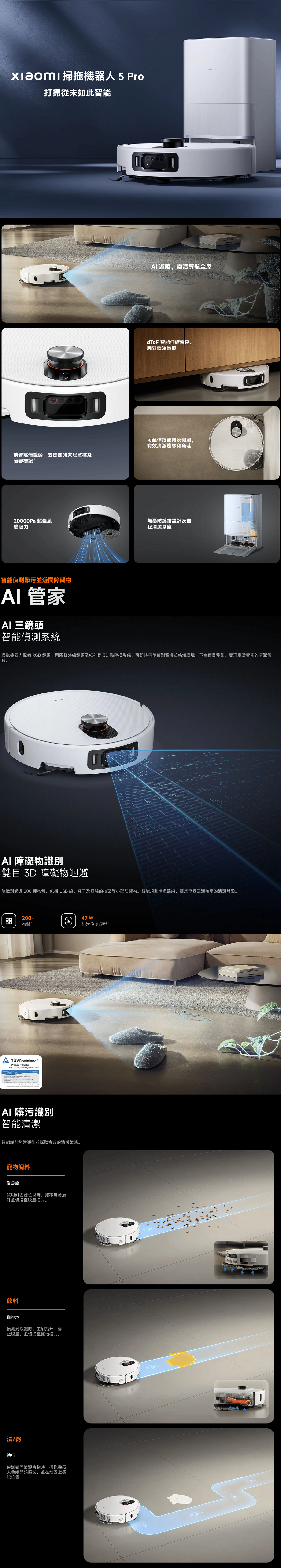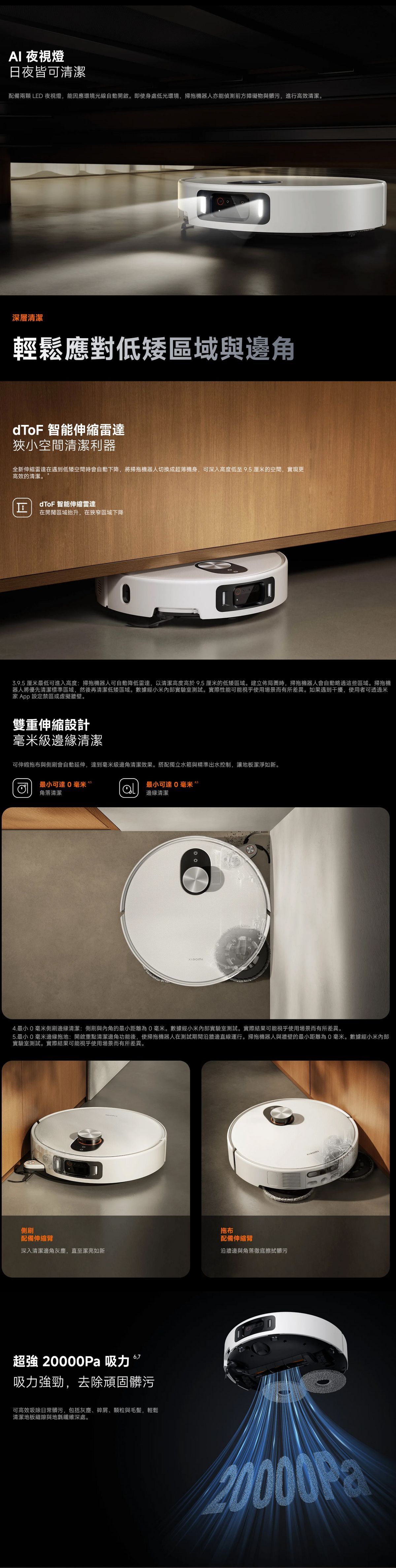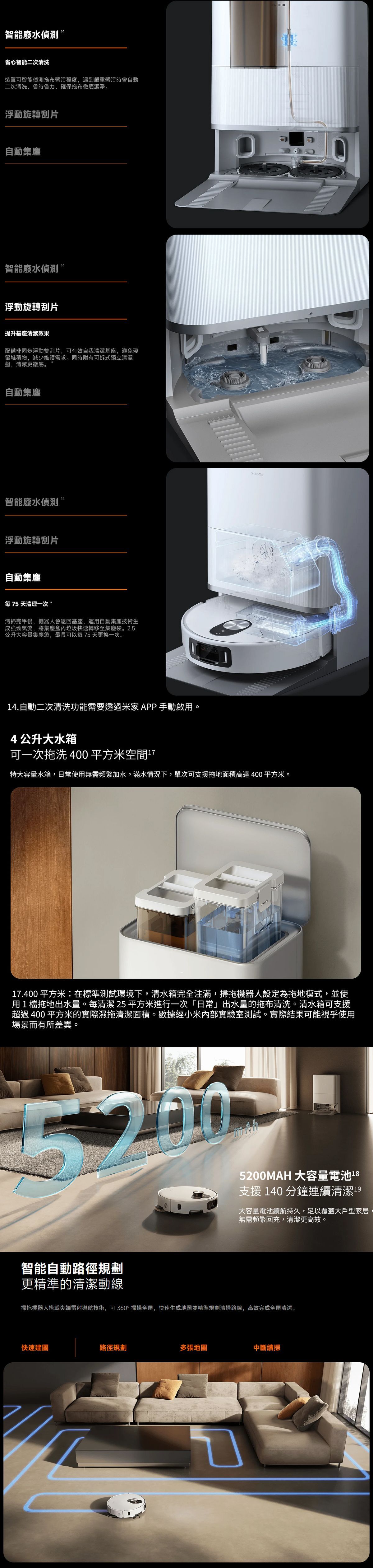 Xiaomi 小米 掃拖機器人 5 Pro 提供高效的地板清潔功能,結合吸塵和拖地,讓您的家居環境清爽整潔。憑藉其智能功能和先進技術,這款機器人掃地機可快速而有效地處理各種地板表面。
