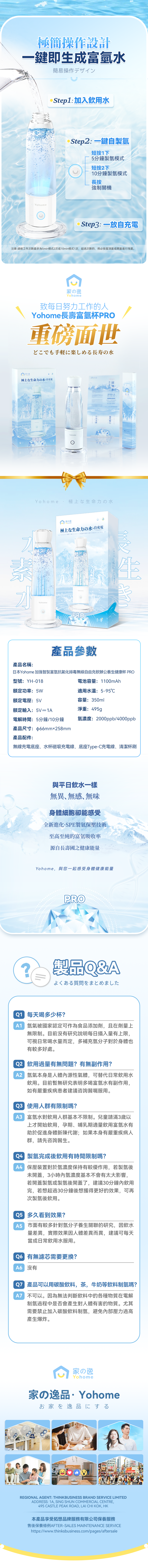 Yohome全新富氫水杯升級350ml,快速製氫4000以上ppb濃度,不限水質5°C-95°C任何水質都可製氫,無線充電+磁吸充電更便利使用。