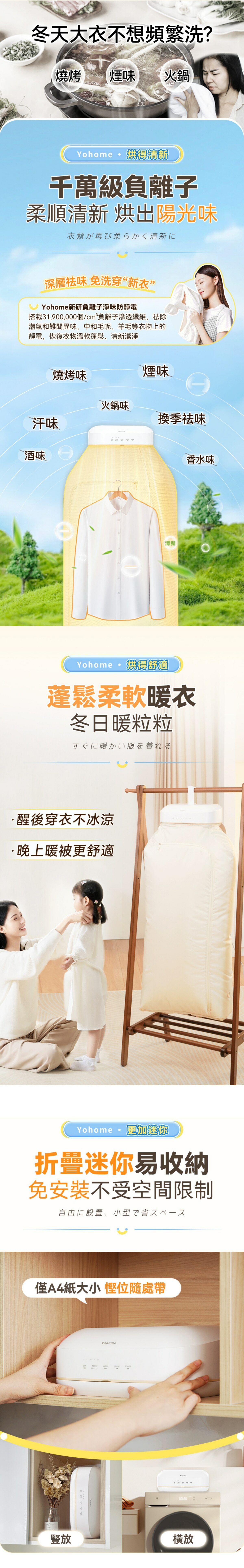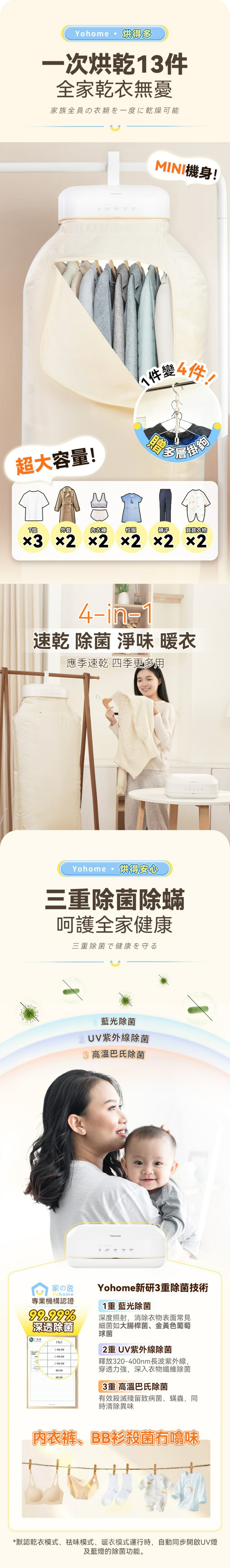 全新升級雙風道加速烘乾,護衣、速烘、暖衣多模式可選,千萬級負離子净化除菌除蟎99.9%,衣物清新更柔順。