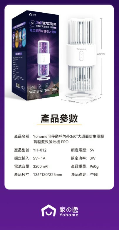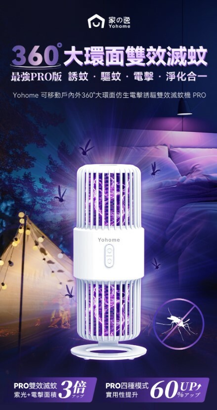 Yohome 家の逸 可移動戶內外360°大環面仿生電擊誘驅雙效滅蚊機 PRO結合了多種功能,不僅可以有效滅蚊,還能解決多種蚊蟲困擾,是一款安全實用的滅蚊裝置。