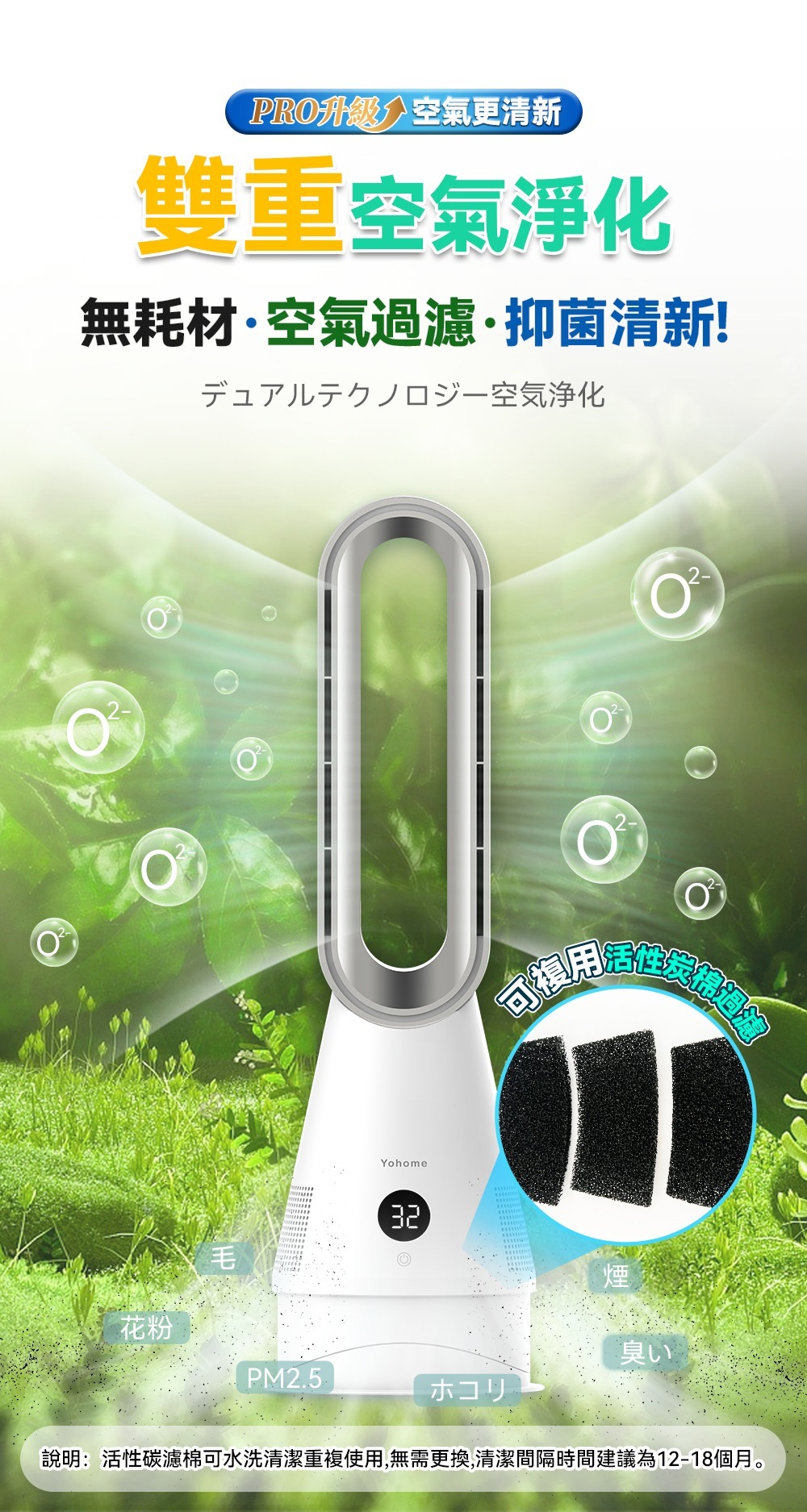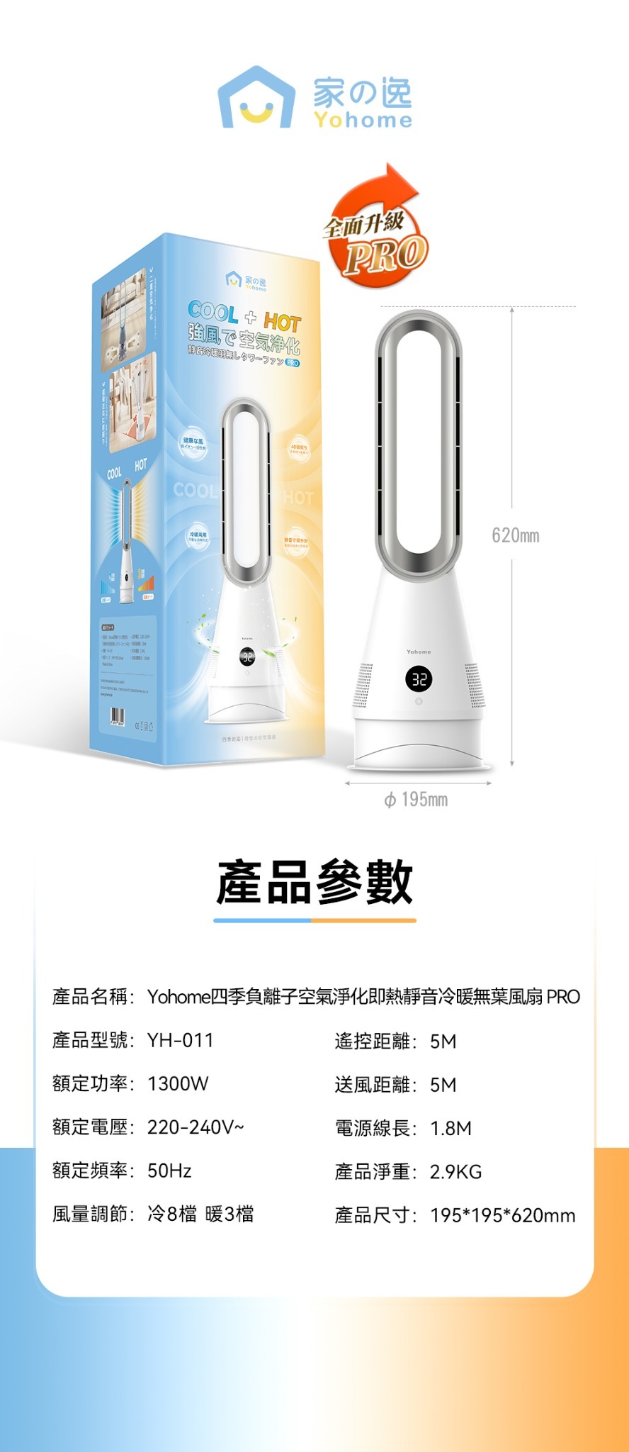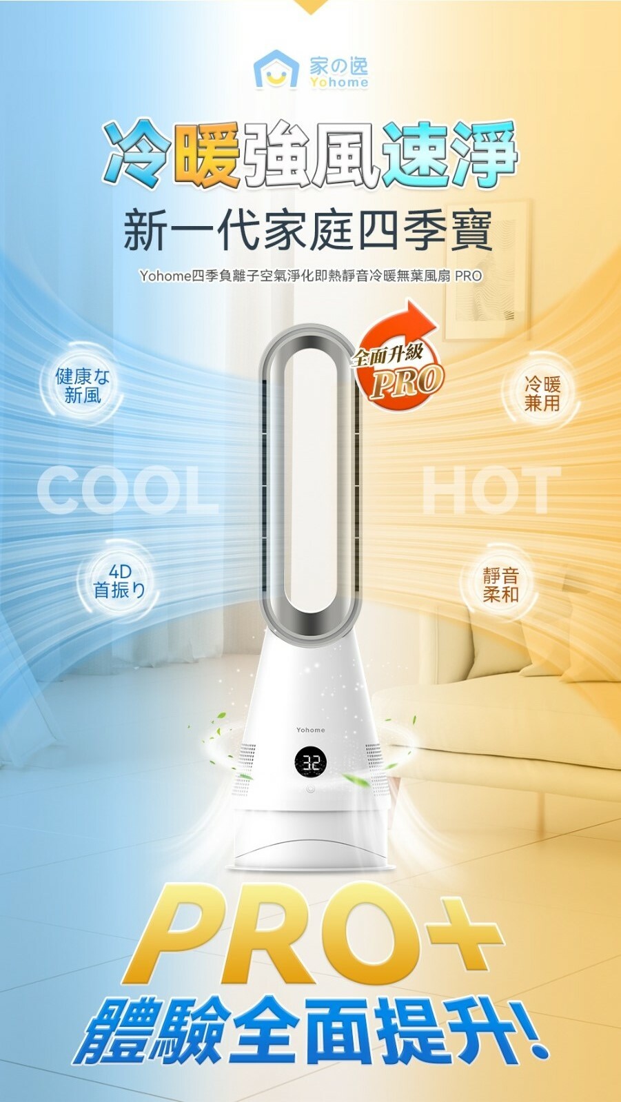 Yohome 家の逸 四季負離子空氣淨化即熱靜音冷暖無葉風扇 PRO 結合了空氣淨化和冷暖風功能,為您帶來清新健康的空氣和舒適溫度,讓您在舒適的環境中度過每一天。