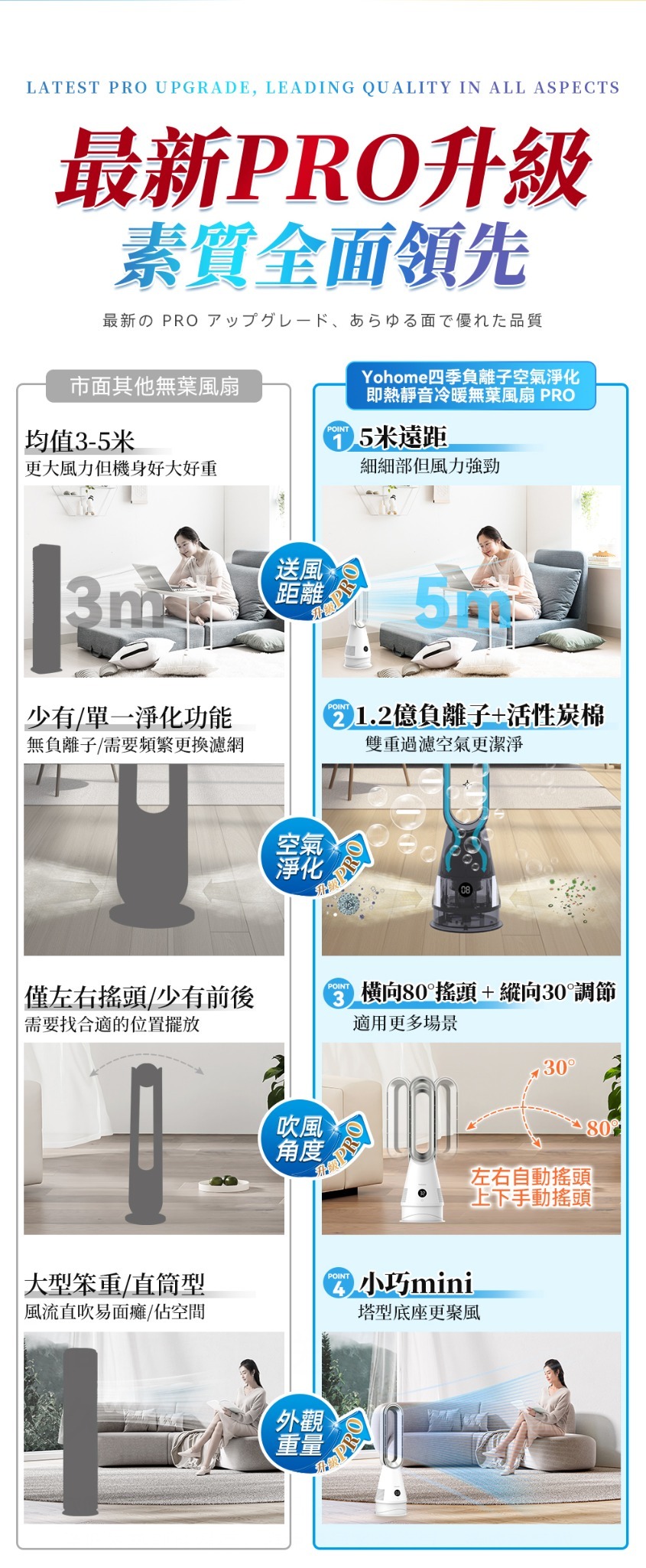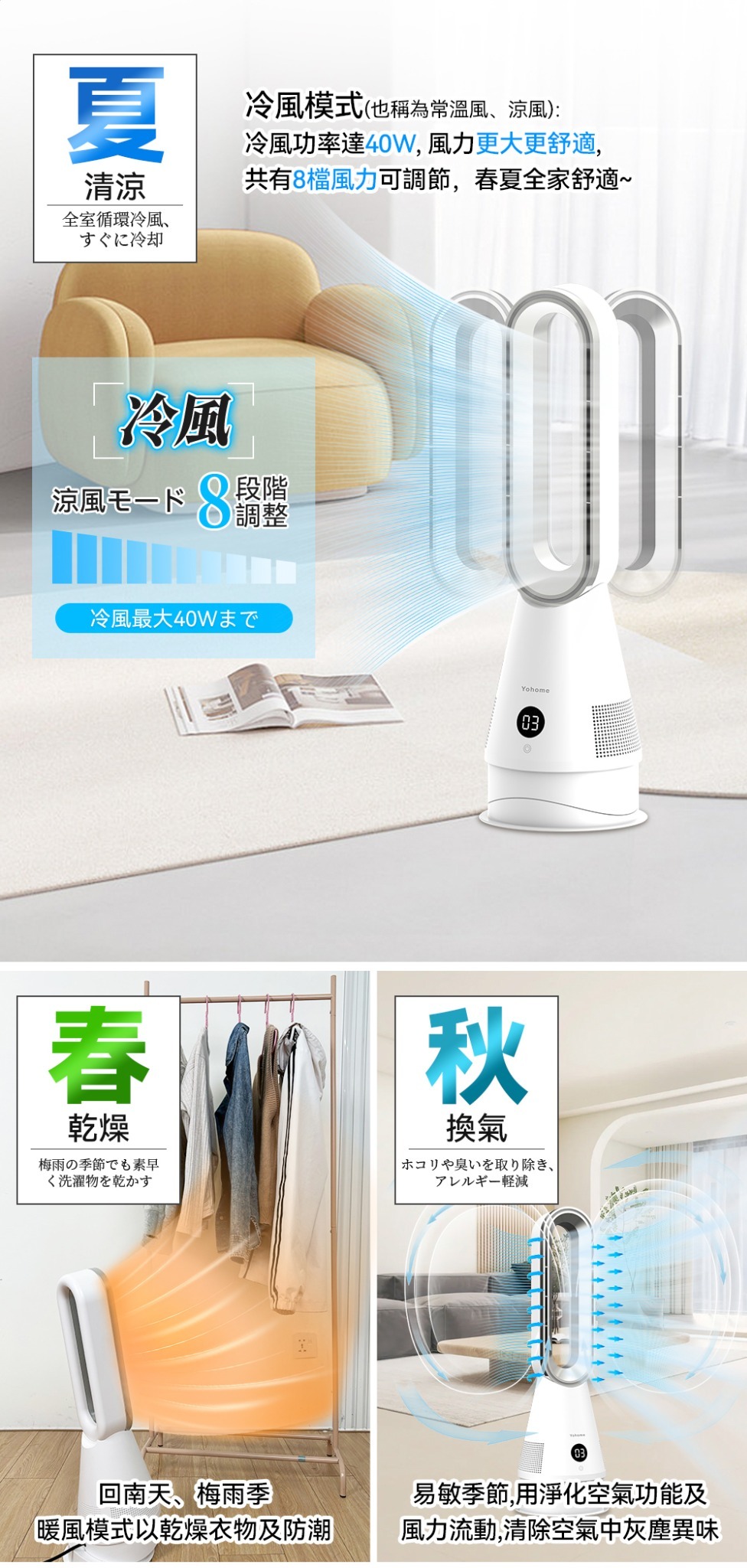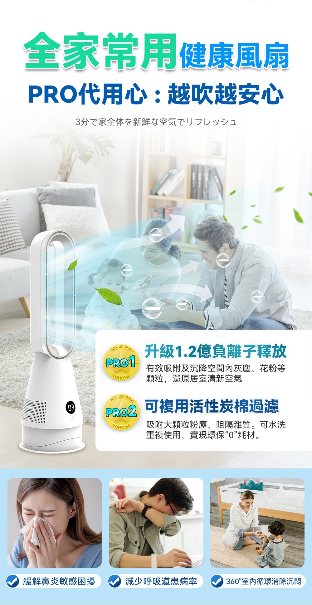 Yohome 家の逸 四季負離子空氣淨化即熱靜音冷暖無葉風扇 PRO 結合了空氣淨化和冷暖風功能,為您帶來清新健康的空氣和舒適溫度,讓您在舒適的環境中度過每一天。